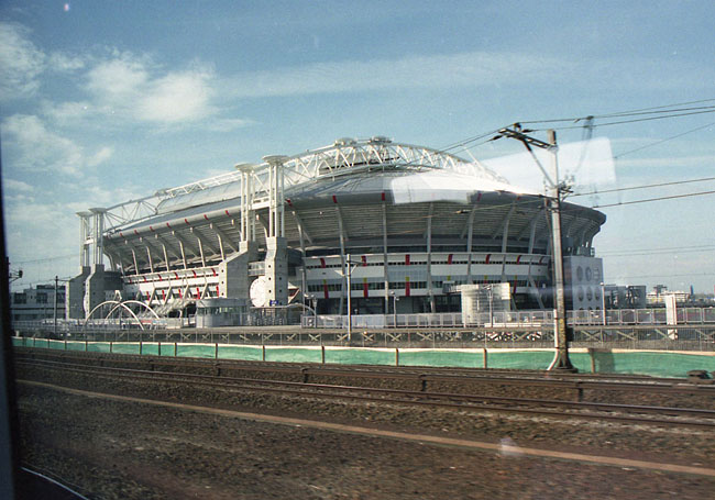 アレーナ サッカー場 列車の窓から、中央駅手前で
