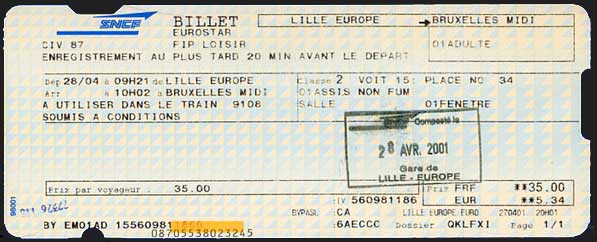 この区間、昨日、今日とユーロスターで往復だ。今日は 600 円程度だな。