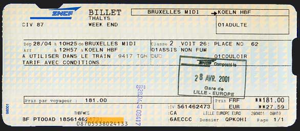 20 分の待ち合わせで今度はタリスでケルンへ