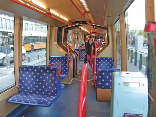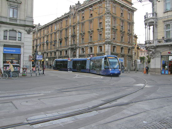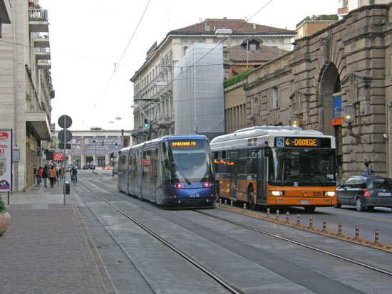 パドヴァのトラムを少し暗いが何とか押さえる。クレルモンフェランと同じ一本線路ゴムタイヤだ。