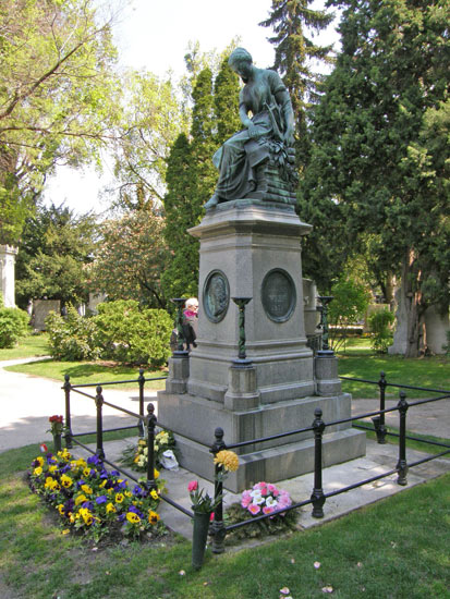 一応、「普通」の人が行く墓地の音楽家ブロックにも行く。 モーツアルト記念碑