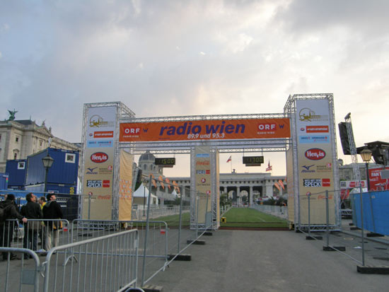 リンクの王宮まで戻るとマラソンゴールの設営をしている。知らなかった!