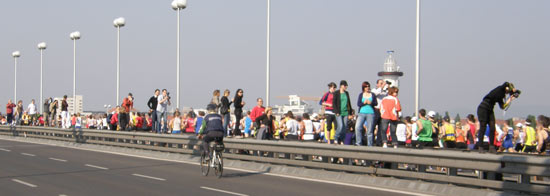 カクランには近づけない。ドナウの橋付近で見物する。