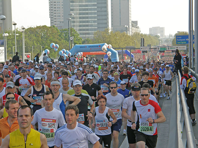 U-1 のカクラン駅は制限があるようなので 2 つ手前のドナウインゼル駅で降りる。辺りは人人人だ!