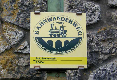 鉄道(世界遺産)観察の道案内板。行程距離の“正確さ”