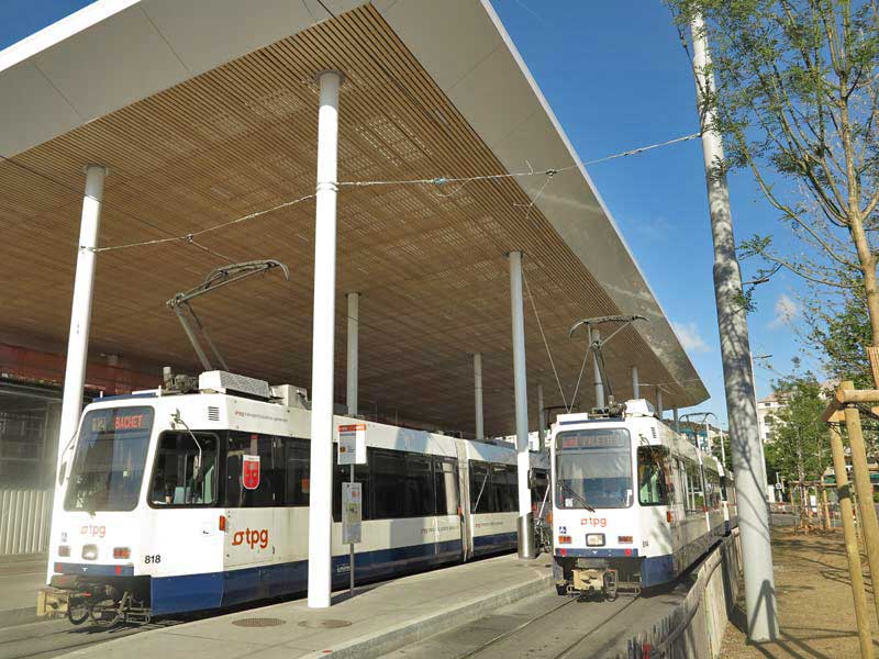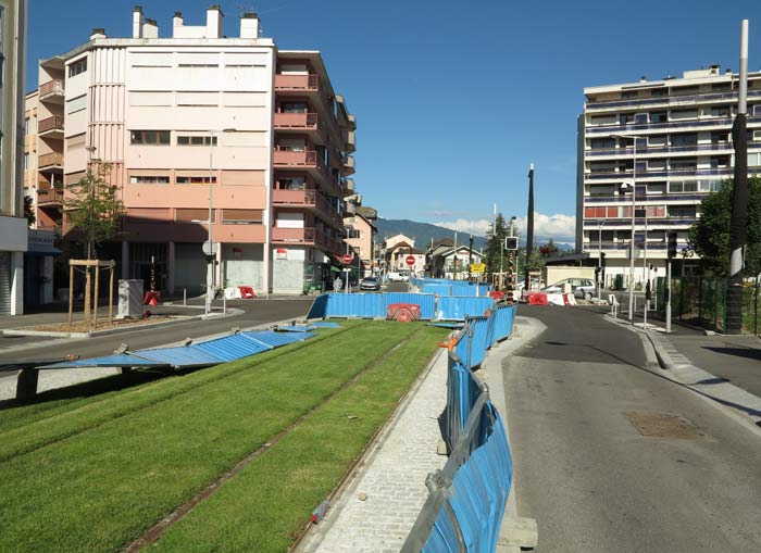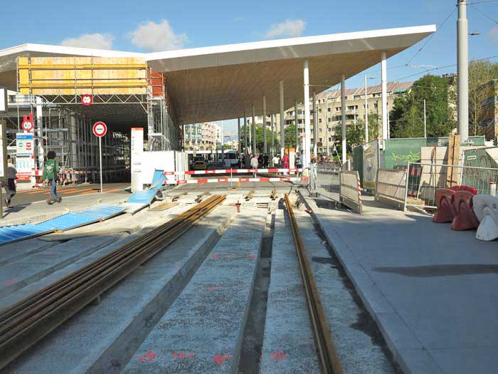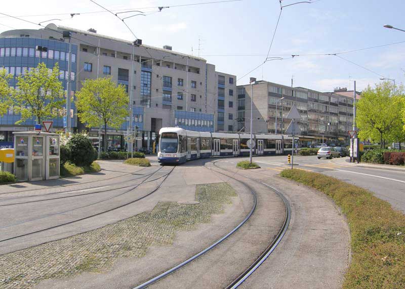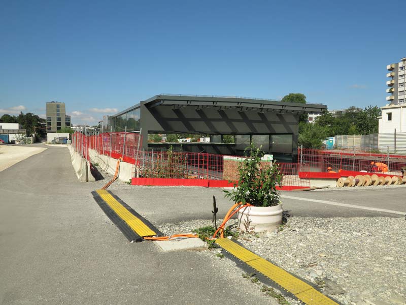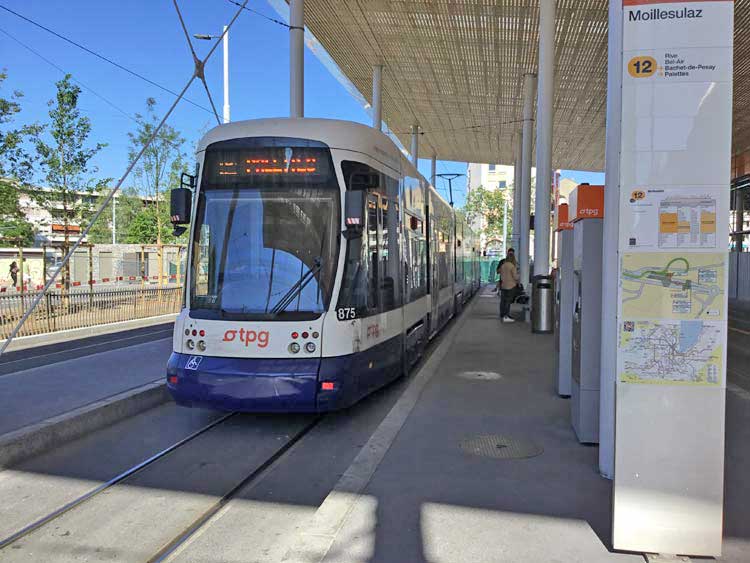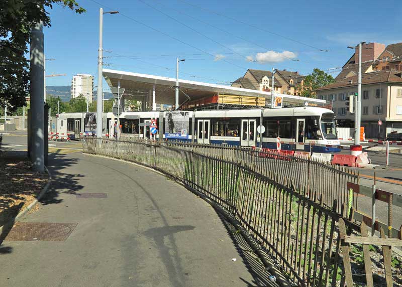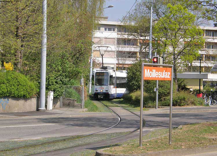 国境の停留所 Moillesulaz(地図の上の写真 C )からフランス側に延伸します。