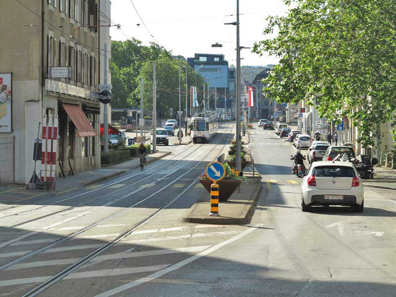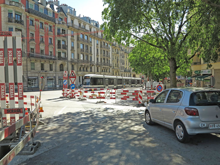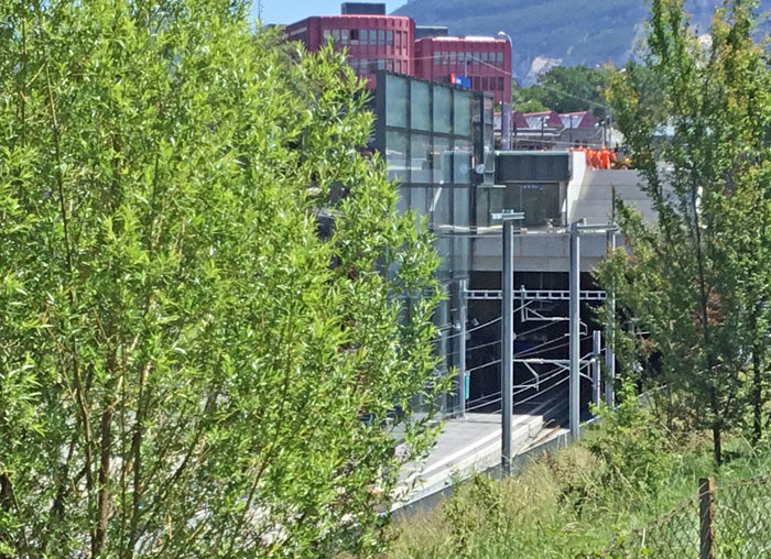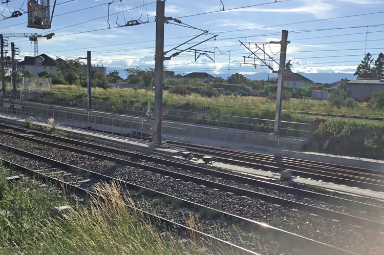 向こう側の線が左側に下り始めて地下でジュネーヴに向かいます。
