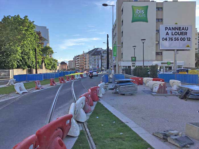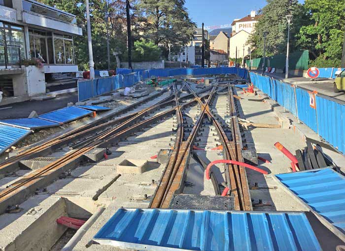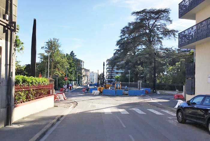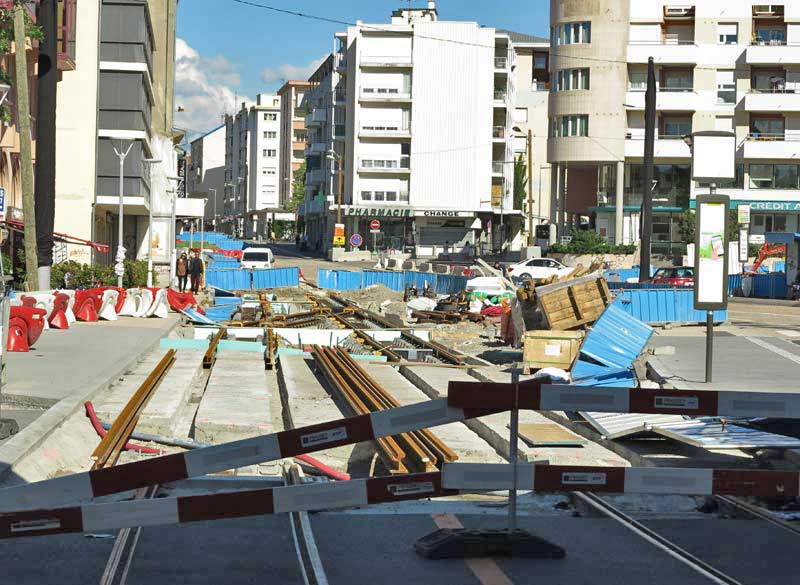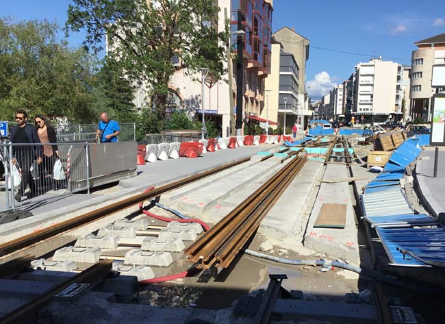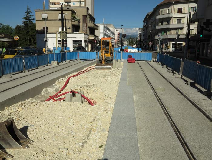 直上の地図 C - Moillesulaz から終点の E2 - Annemasse Parc Montessuit が工事中です。