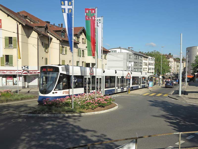 撮影時点での終点の U ターン、ほぼ国境上の Moillesulaz 停留所