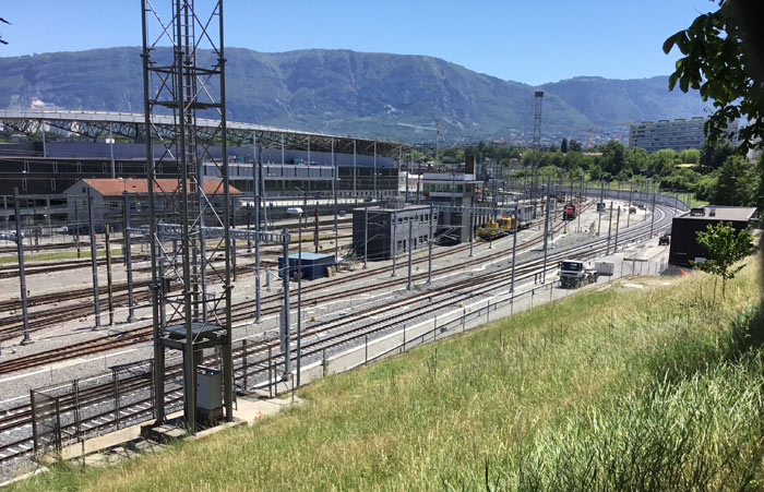 巨大なヤードがジュネーヴコルナバン駅から繋がっているのでそこを利用します。一番手前の線です。