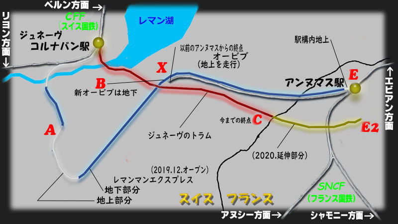 ジュネーヴコルナバン駅とアンヌマス駅間が新設ですがプロジェクトは両国既存を含めた大規模なものです。