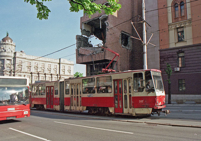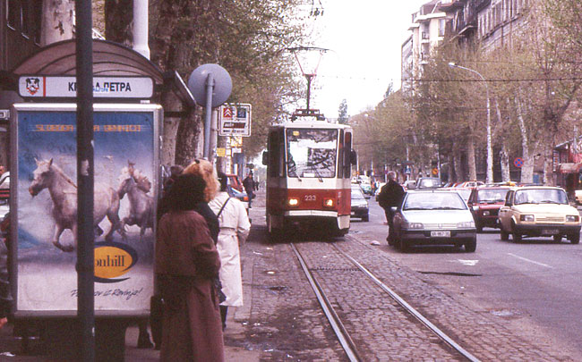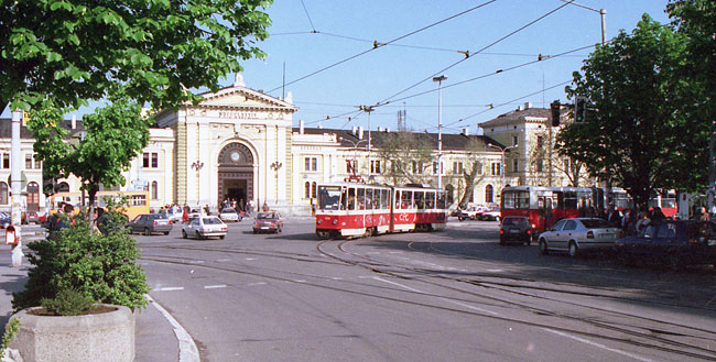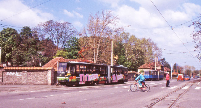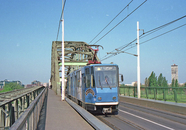 この町でドナウに合流するサバ川を渡るトラム