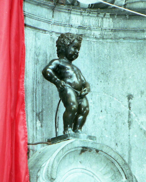 有名な小便小僧を押さえる