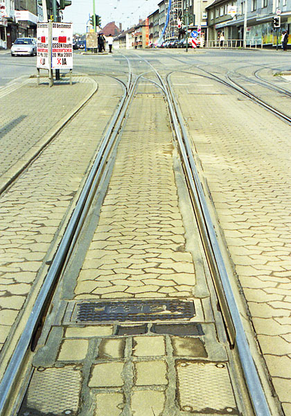 クレフェルト、市内線とデュッセルドルフからの線の幅が異なるから 4 線軌道