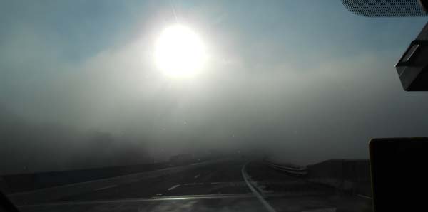 10分ほどで脱出、 日本では山中でガスに巻かれた事は有るが平地ではないと思う。