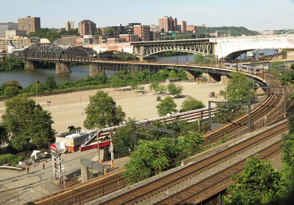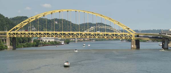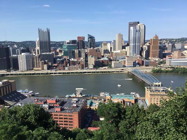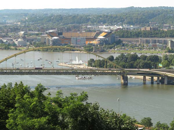 ピツツバーグの町はモノンガヒラ川とアレガニー川の合流地点の間の平地にあり周囲は小高い丘だ。
