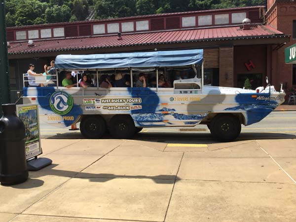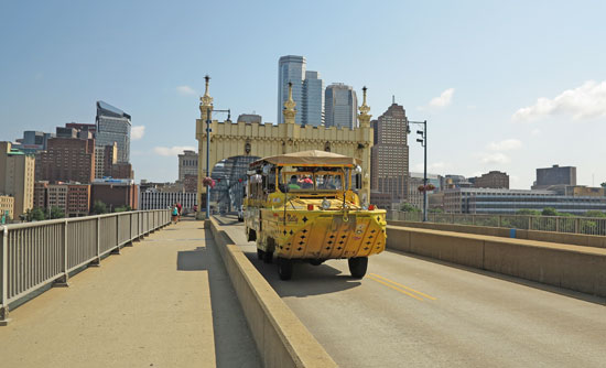 スミスフィールド ストリート橋を渡って中心(ダウンタウン)へ 水陸両用車も渡る