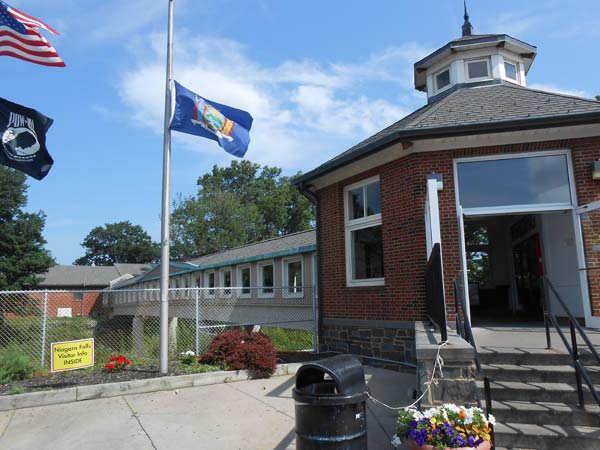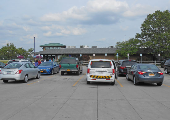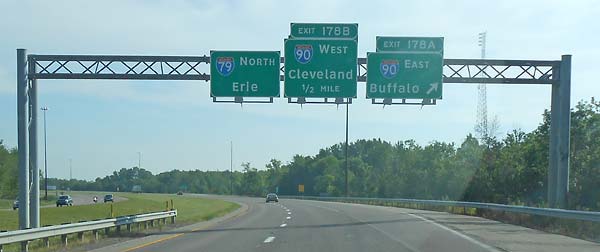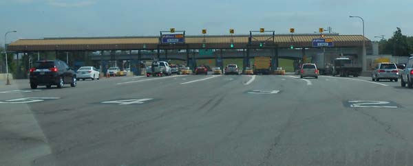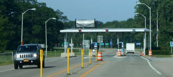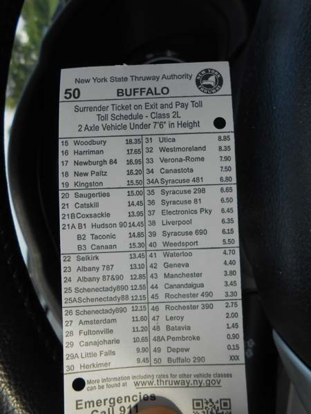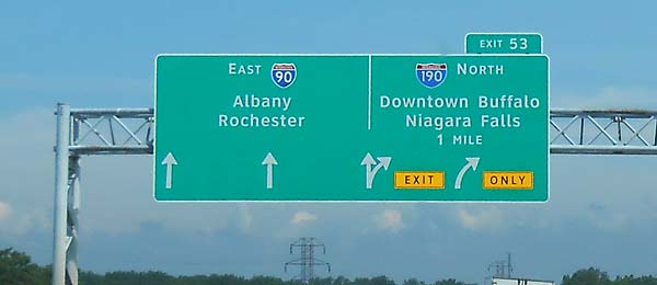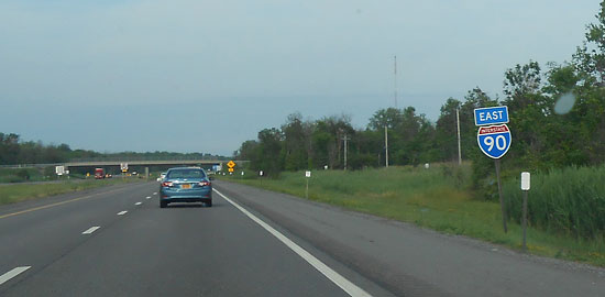 入れたらまた入る。標識 I-90 の右はニューヨーク州有料道路のしるし。