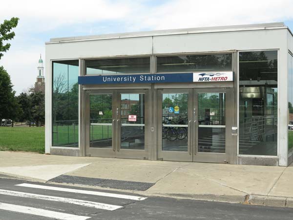 終点の「大学駅」 ここは町中が地上で郊外が地下、殆どの他の都市は逆で町中が地下。