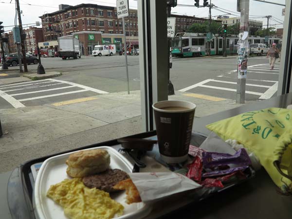 6 時半にバス停に行くと何と日本人ビジネスマンがいる。ボストンに通勤とのこと。時刻表が無くて心配だったが一安心。
