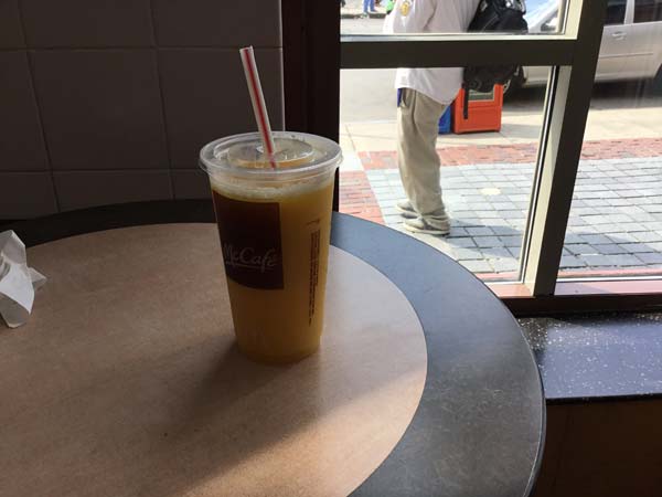 そして目の前がマックだ! オレンジジュース L サイズを頂く。