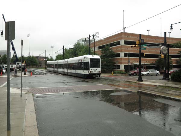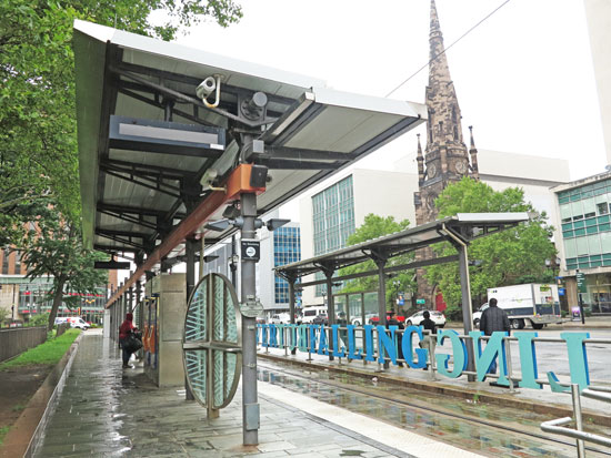 出てトラム撮影をすることにする。雨が激しいが写す場面は延伸部約 2 Km だ。