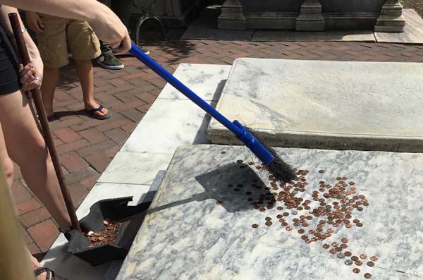 フランクリンの墓のお賽銭(お供え)は箒で集める