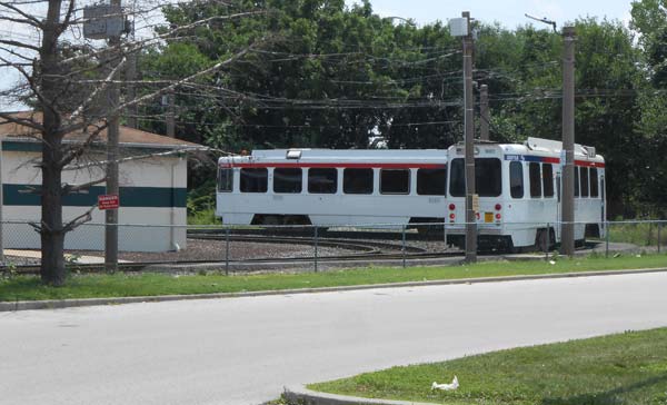 カムデンにもどる際、電車からリバーライントラムが見える。