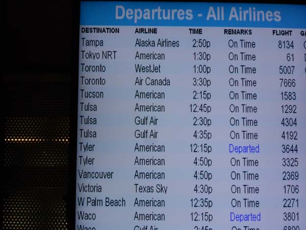 ダラス着 40 分遅れているので 1 時間ほどしかない。