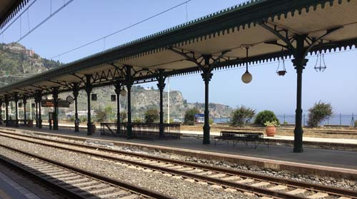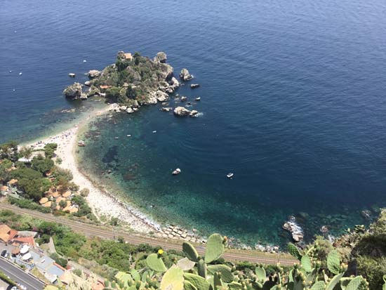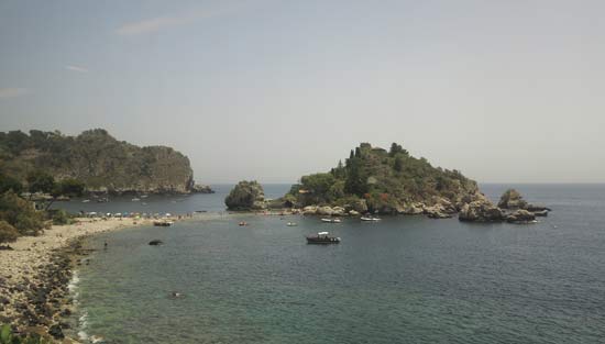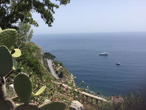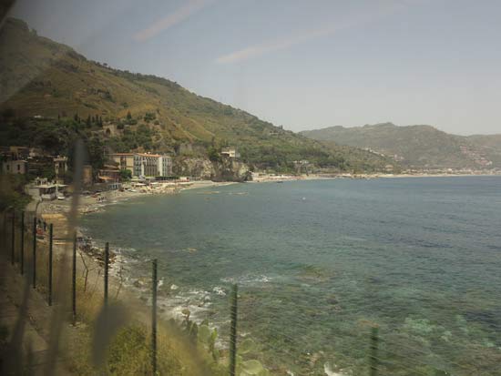 超満員のバスで 10 分の山登りでタオルミーナ。人出の所を避ける。下りは歩く。