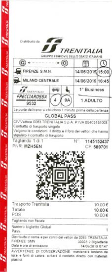 着いてすぐにフィレンツェからミラノの指定を押さえる。10 だ。