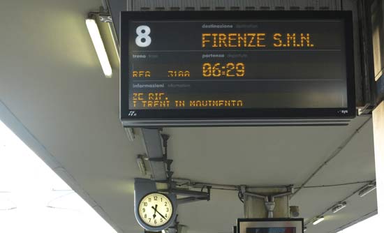 列車はミラノ行だがフィレンツェへはピサで乗り換える。