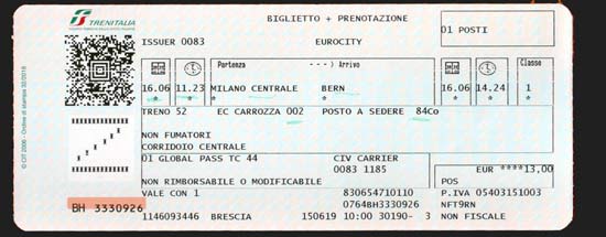 昨日トリノに行く際にブレシアの窓口が混でいなかったので急遽取った。