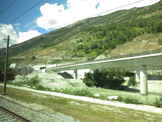 トンネルが深く( つまり下側400m )なったので今の乗換駅はブリークの先のフィスプに変更。
