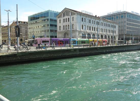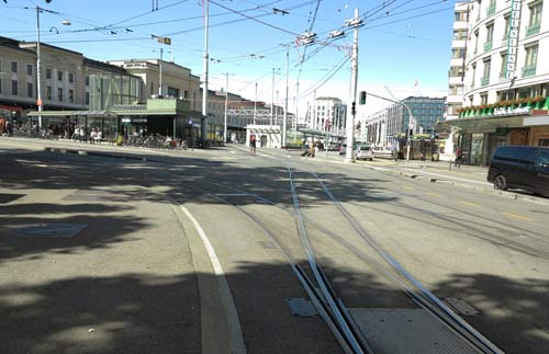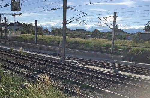ジュネーヴ、 4 時半だけど真っ昼間だ。全荷物を背負っているが線路に沿って写しながら移動する。
