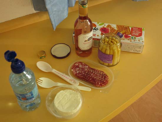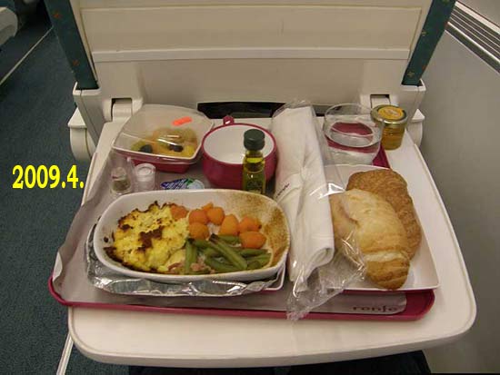 一等のパスなのに二等だ。楽しみなお食事がパーになる。 自分で調達サンドイッチ
