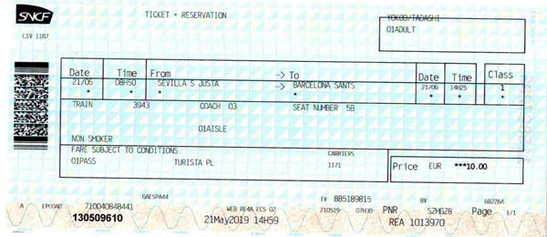 バルセロナから引き続きフランス方面に乗り継ぐのだがこの区間は全く心配が無いので自由度を考えて買わないでおき、