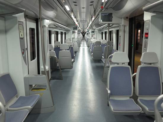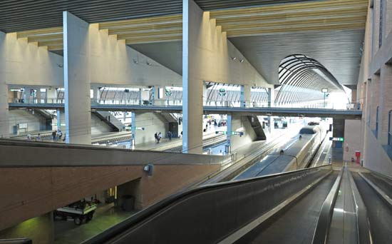 なにか SF 映画にあったようなセビーヤ駅緩勾配のホーム連絡
