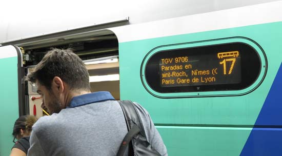 心配ない理由はこの列車はバルセロナ発パリ行の超・長距離 TGV でそのためかニームの次はパリだ!