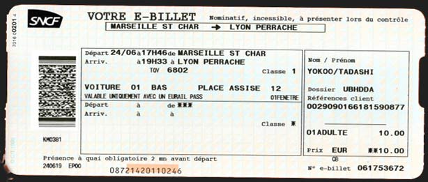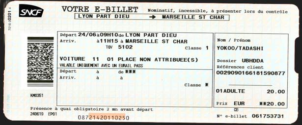 でも到着はリヨンペラシェ駅になります。今日の場合は有り難くないが取れれば良い。
