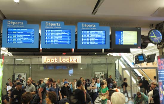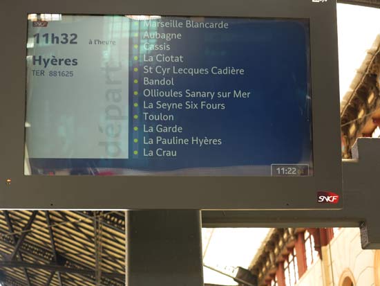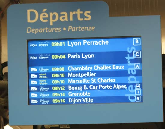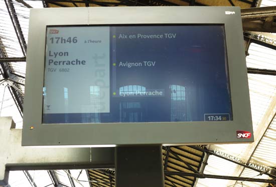マルセイユ行が何番線かが表示されないので皆ホームに行けないで待っている。