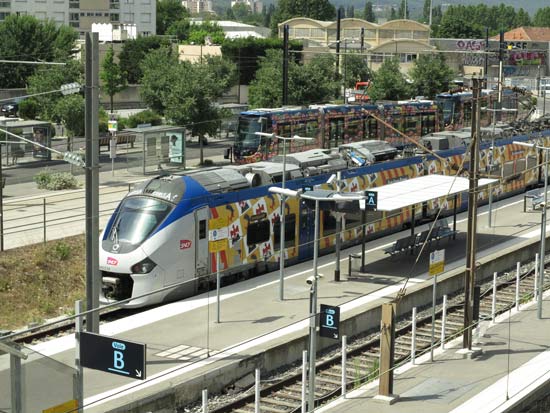 マルセイユサンシャルル駅に戻る。 見たことがない車両が入ってくる。