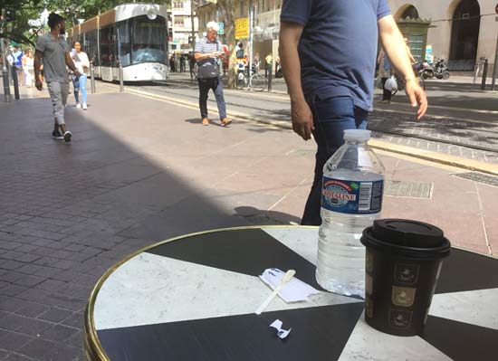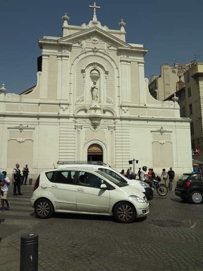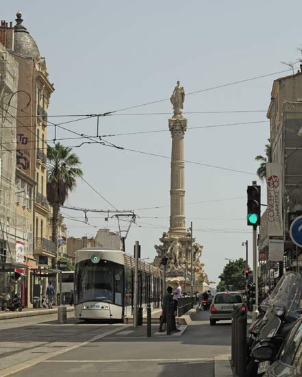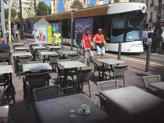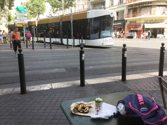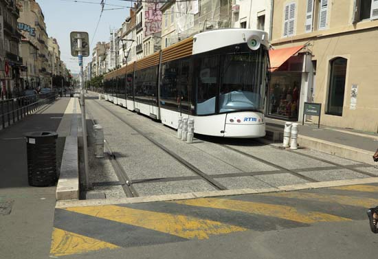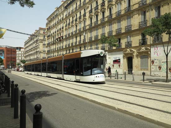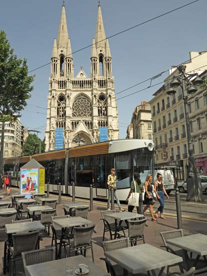 繁華街ラカヌピエール通りを上ってサンバンサンドポール教会前までトラムを写しながらブラブラする。