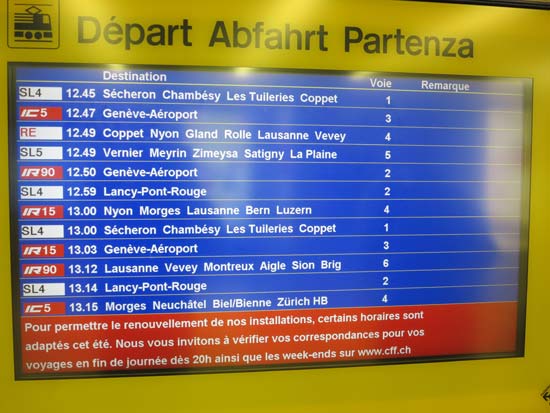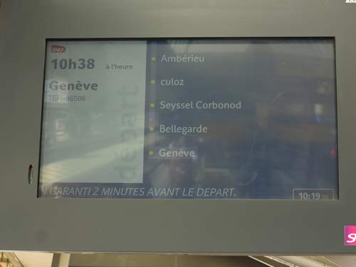 時刻表を睨んでまず 10 時 38 分リヨンパールデュー駅発ジュネーヴ行 RE に乗ることにする。指定不要だ。