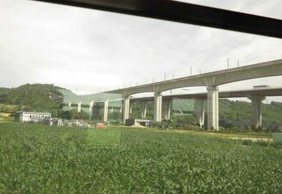 走り出してかなりたってから TGV 新線。かなり東に「迂回」している。