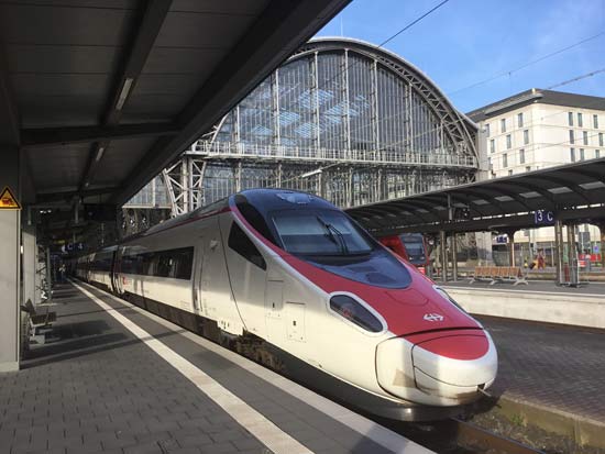 フランクフルトへは TGV でパリ、パリ→フランクフルト ICE が簡単なルートと思う。10+30=40が掛かる。