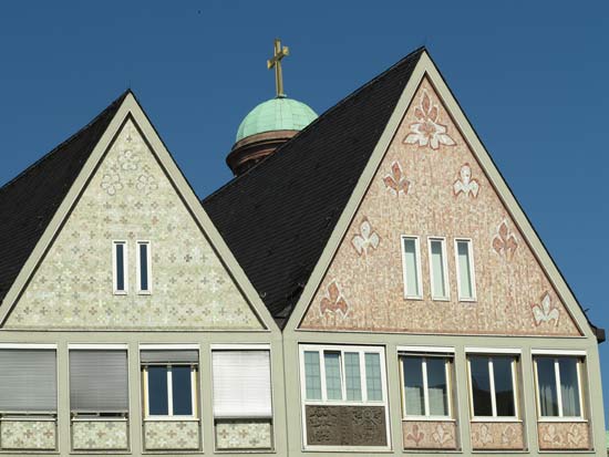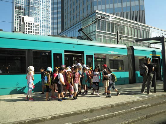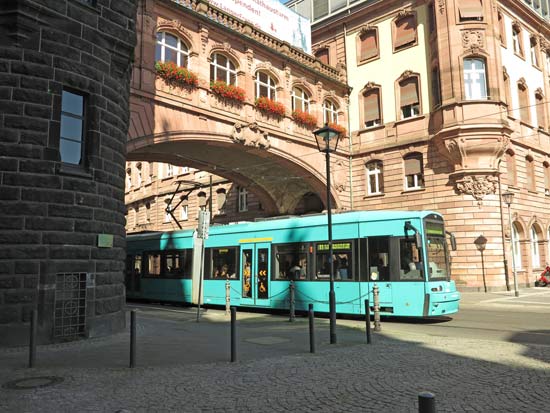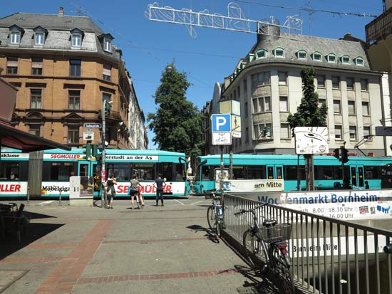 ボルンハイムミッテは以前はリンゴ酒電車の始発駅だった。ここも独特の町で乗る前にコーヒーを頂いた。