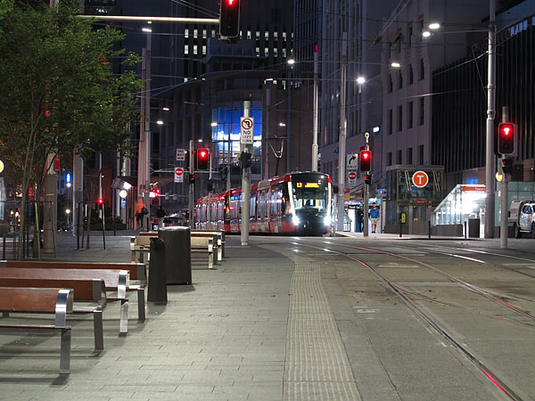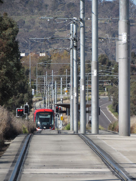 車両はシドニーと同じスペイン CAF 製「ウルボス」だが正面の「顔」はかなり異なる。