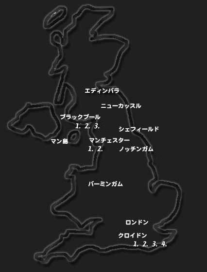 この地図ではイギリスの路面電車走行都市の所在を示しています。